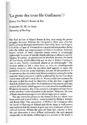 Le Saux, F. (2008) "La geste des trois fils Guillaume?" Henry I in Wace's Roman de Rou. Reading Medieval Studies, XXXIV. pp. 191-207. ISSN 0950-3129