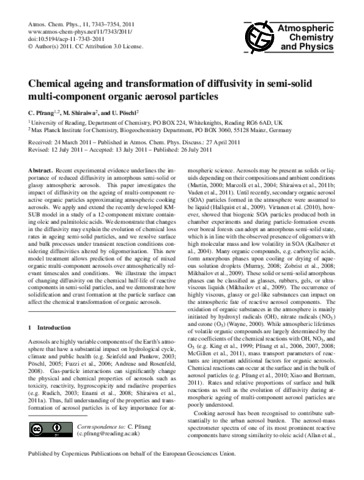 Pfrang, C., Shiraiwa, M. and Pöschl, U. (2011) Chemical ageing and transformation of diffusivity in semi-solid multi-component organic aerosol particles. Atmospheric Chemistry and Physics, 11 (14). pp. 7343-7354. ISSN 1680-7324 doi: 10.5194/acp-11-7343-2011