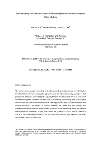Benchmarking and valuation issues in measuring depreciation for European office markets.