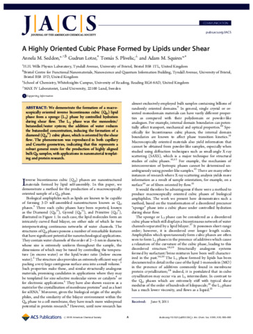 Seddon, A. M., Lotze, G., Plivelic, T. S. and Squires, A. M. (2011) A highly oriented cubic phase formed by lipids under shear. Journal of the American Chemical Society, 133 (35). pp. 13860-13863. ISSN 0002-7863 doi: 10.1021/ja2053336