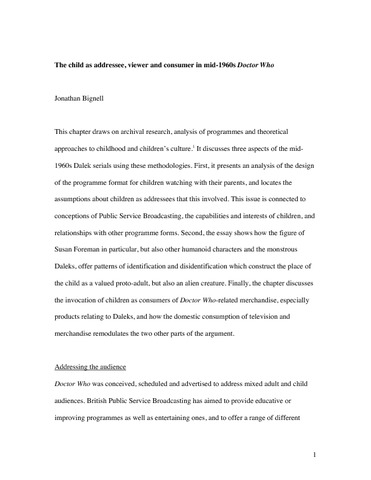 The child as addressee, viewer and consumer in mid-1960s 'Doctor Who'.