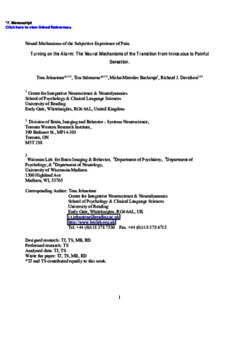 Johnstone, T., Salomons, T. V., Backonja, M. and Davidson, R. J. (2012) Turning on the alarm: the neural mechanisms of the transition from innocuous to painful sensation. NeuroImage, 59 (2). pp. 1594-1601. ISSN 1053-8119 doi: 10.1016/j.neuroimage.2011.08.083