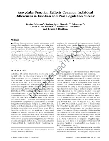 Amygdalar function reflects common individual differences in emotion and pain regulation success.