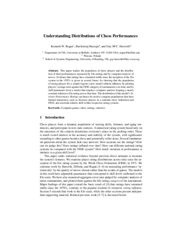 Regan, K. W., Macieja, B. and Haworth, G. orcid id iconORCID: https://orcid.org/0000-0001-9896-1448 (2012) Understanding distributions of chess performances. In: Advances in Computer Games. Lecture Notes in Computer Science, 7168. Springer-Verlag, Heidelberg, pp. 230-243. doi: 10.1007/978-3-642-31866-5_20