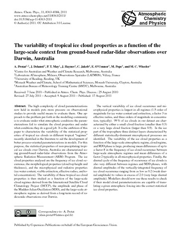 Protat, A., Delanoë, J., May, P. T., Haynes, J., Jakob, C., O'Connor, E. J., Pope, M. and Wheeler, M. C. (2011) The variability of tropical ice cloud properties as a function of the large-scale context from ground-based radar-lidar observations over Darwin, Australia. Atmospheric Chemistry and Physics, 11 (16). pp. 8363-8384. ISSN 1680-7316 doi: 10.5194/acp-11-8363-2011