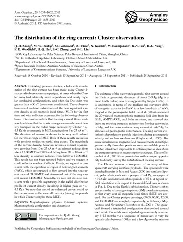 Zhang, Q.-H., Dunlop, M. W., Lockwood, M. orcid id iconORCID: https://orcid.org/0000-0002-7397-2172, Holme, R., Kamide, Y., Baumjohann, W., Liu, R.-Y., Yang, H.-G., Woodfield, E. E., Hu, H.-Q., Zhang, B.-C. and Liu, S.-L. (2011) The distribution of the ring current: Cluster observations. Annales Geophysicae, 29 (9). pp. 1655-1662. ISSN 0992-7689 doi: 10.5194/angeo-29-1655-2011