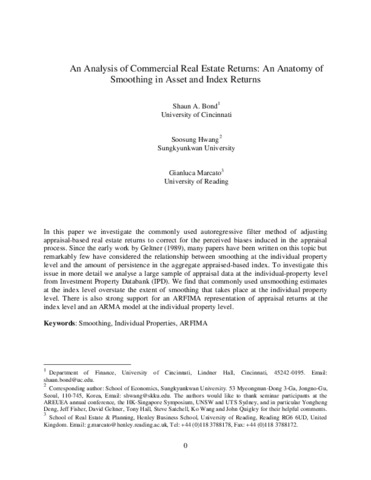 An analysis of commercial real estate returns: an anatomy of smoothing in asset and index returns.