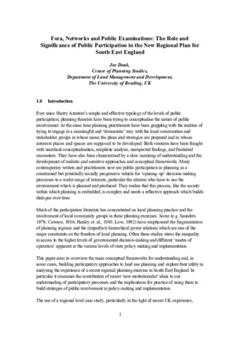 This paper overviews the main conceptual frameworks for understanding participatory approaches to land use planning and explores their utility in analysing the experience of a recent regional planning exercise in South East England. In particular it examines the contribution of recent ‘New Institutionalist’ ideas to our understanding of participatory processes and the implications for practice of using them to build strategies of public involvement in policy-making and implementation.