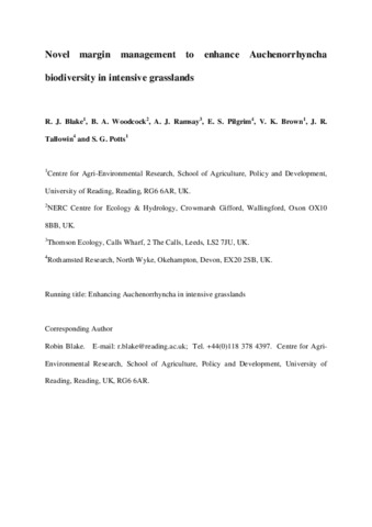 Novel margin management to enhance Auchenorrhyncha biodiversity in intensive grasslands.