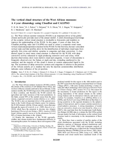 The vertical cloud structure of the West African monsoon: a 4 year climatology using CloudSat and CALIPSO.