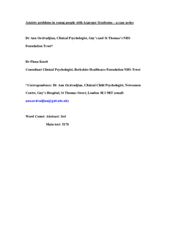 Anxiety problems in young people with Asperger syndrome: a case series.