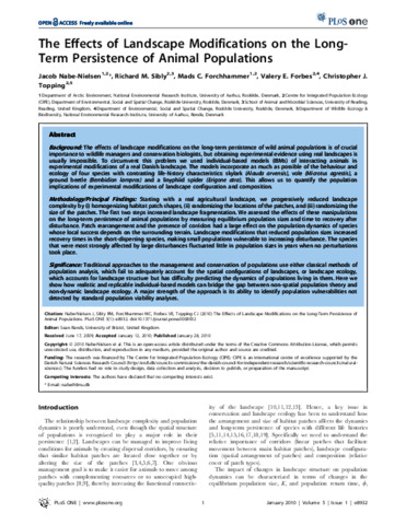 Background: The effects of landscape modifications on the long-term persistence of wild animal populations is of crucial importance to wildlife managers and conservation biologists, but obtaining experimental evidence using real landscapes is usually impossible. To circumvent this problem we used individual-based models (IBMs) of interacting animals in experimental modifications of a real Danish landscape. The models incorporate as much as possible of the behaviour and ecology of four species with contrasting life-history characteristics: skylark (Alauda arvensis), vole (Microtus agrestis), a ground beetle (Bembidion lampros) and a linyphiid spider (Erigone atra). This allows us to quantify the population implications of experimental modifications of landscape configuration and composition. Methodology/Principal Findings: Starting with a real agricultural landscape, we progressively reduced landscape complexity by (i) homogenizing habitat patch shapes, (ii) randomizing the locations of the patches, and (iii) randomizing the size of the patches. The first two steps increased landscape fragmentation. We assessed the effects of these manipulations on the long-term persistence of animal populations by measuring equilibrium population sizes and time to recovery after disturbance. Patch rearrangement and the presence of corridors had a large effect on the population dynamics of species whose local success depends on the surrounding terrain. Landscape modifications that reduced population sizes increased recovery times in the short-dispersing species, making small populations vulnerable to increasing disturbance. The species that were most strongly affected by large disturbances fluctuated little in population sizes in years when no perturbations took place. Significance: Traditional approaches to the management and conservation of populations use either classical methods of population analysis, which fail to adequately account for the spatial configurations of landscapes, or landscape ecology, which accounts for landscape structure but has difficulty predicting the dynamics of populations living in them. Here we show how realistic and replicable individual-based models can bridge the gap between non-spatial population theory and non-dynamic landscape ecology. A major strength of the approach is its ability to identify population vulnerabilities not detected by standard population viability analyses.