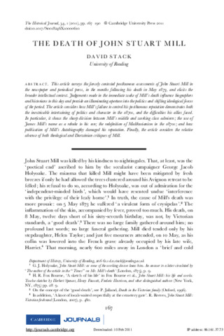 Stack, D. (2011) The death of John Stuart Mill. The Historical Journal, 54 (1). pp. 167-190. ISSN 1469-5103 doi: 10.1017/S0018246X10000610