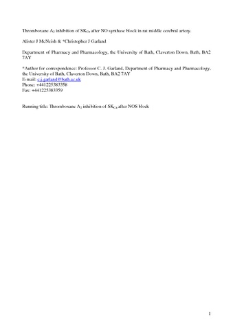 McNeish, A. and Garland, C. J. (2007) Thromboxane A2 inhibition of SKCa after NO synthase block in rat middle cerebral artery. British Journal of Pharmacology, 151 (4). pp. 441-449. ISSN 1476-5381 doi: 10.1038/sj.bjp.0707240