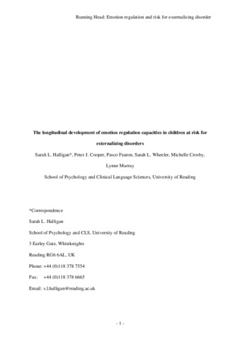 Halligan, S. L., Cooper, P. J., Fearon, P., Wheeler, S. L., Crosby, M. and Murray, L. (2013) The longitudinal development of emotion regulation capacities in children at risk for externalizing disorders. Development and Psychopathology, 25 (2). pp. 391-406. ISSN 1469-2198 doi: 10.1017/S0954579412001137