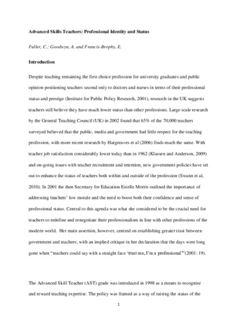 Advanced skills teachers: professional identity and status.