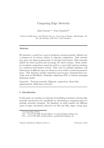 Parsons, M. C. and Grindrod, P. (2012) Competing edge networks. Physics Letters A, 376 (32). pp. 2167-2173. ISSN 0375-9601 doi: 10.1016/j.physleta.2012.05.008