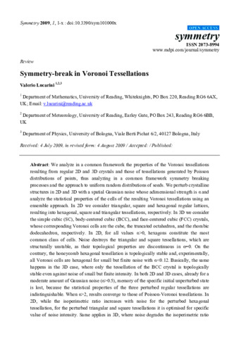 Uncontrolled Keywords | Voronoi tessellation; numerical simulations; random geometry; symmetry break; topological stability; Poisson point process; Desch law; Lewis law; cubic crystals; simple cubic; face-centred cubic; body-centred cubic; Gaussian noise; anomalous scaling; isoperimetric quotient; fluctuations; Kelvin's conjecture; Kepler's conjecture; Kendall’s conjecture |