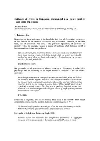 Baum, A., (2000) Evidence of cycles in European commercial real estate markets and some hypotheses. Working Papers in Land Management & Development. 05/00. Working Paper. University of Reading, Reading. pp18.
