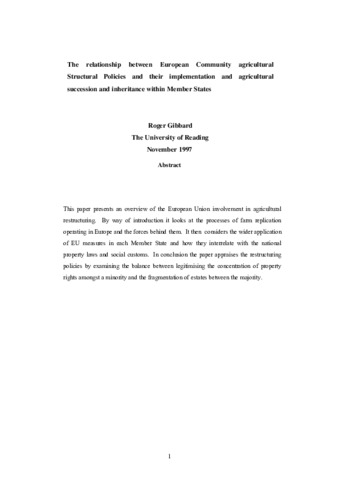 Gibbard, R., (1997) The relationship between European Community agricultural Structural Policies and their implementation and agricultural succession and inheritance within Member States. Working Papers in Land Management & Development. 06/97. Working Paper. University of Reading, Reading. pp37.