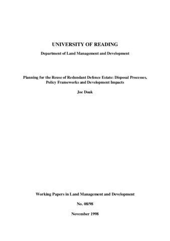 Planning for the reuse of redundant defence estate: disposal processes, policy frameworks and development impacts