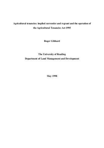 Gibbard, R., (1998) Agricultural tenancies: implied surrender and regrant and the operation of the Agricultural Tenancies Act 1995. Working Papers in Land Management & Development. 11/98. Working Paper. University of Reading, Reading. pp10.
