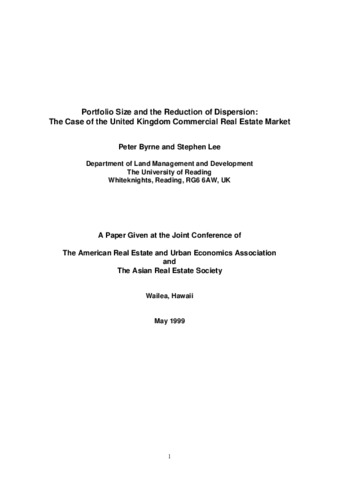 Byrne, P. and Lee, S., (1999) Portfolio size and the reduction of dispersion: the case of the United Kingdom commercial real estate market. Working Papers in Land Management & Development. 04/99. Working Paper. University of Reading, Reading. pp27.