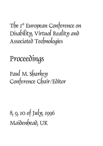 Sharkey, P., ed. (1996) Proceedings of the 1st European conference on disability, virtual reality and associated technologies (ECDVRAT 1996). ICDVRAT. The University of Reading, Reading, UK, pp258. ISBN 070491140X
