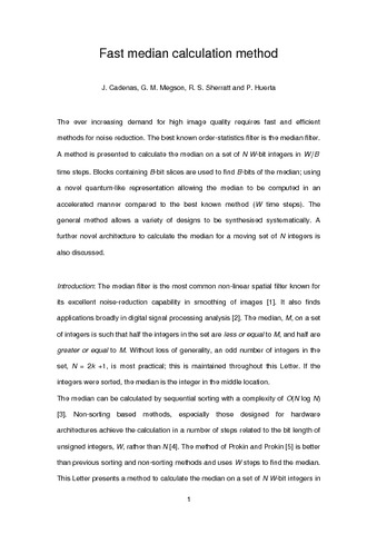 | Uncontrolled Keywords | image denoising , median filters , statistical analysis B-bit slices , N W-bit integers , W-B time steps , best-known order-statistics filter , fast median calculation method , high image quality , median filter , noise reduction , quantum-like representation |