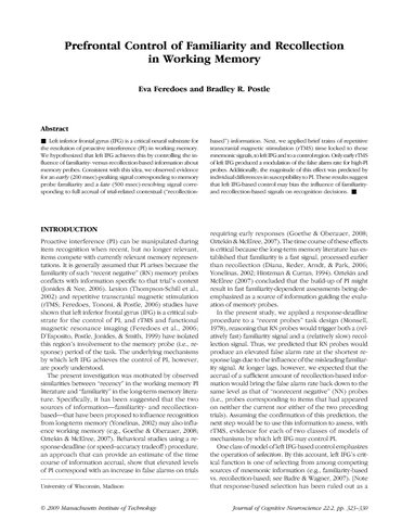 Feredoes, E. and Postle, B. R. (2010) Prefrontal control of familiarity and recollection in working memory. Journal of Cognitive Neuroscience, 22 (2). pp. 323-30. ISSN 0898-929X doi: 10.1162/jocn.2009.21252