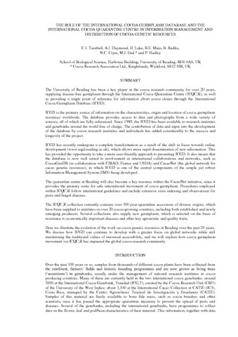 The role of the international cocoa germplasm database and the international cocoa quarantine centre in information management and distribution of cocoa genetic resources.