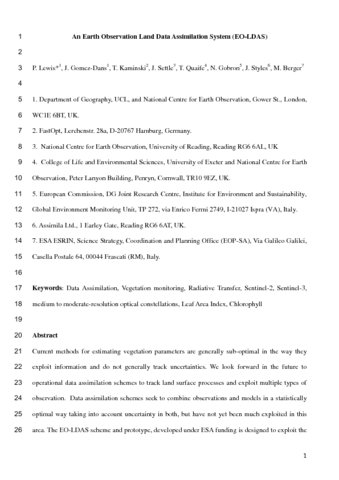 Lewis, P., Gomez-Dans, J., Kaminski, T., Settle, J., Quaife, T. ORCID: https://orcid.org/0000-0001-6896-4613, Gobron, N., Styles, J. and Berger, M.