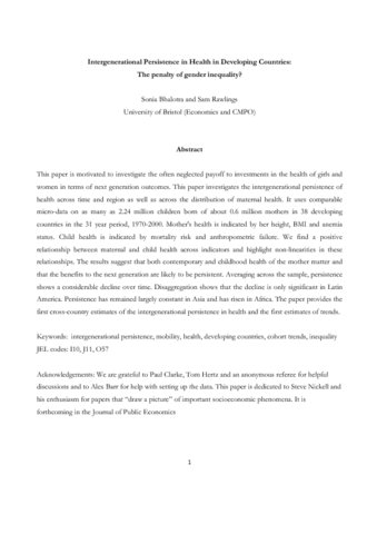 Intergenerational persistence in health in developing countries : the penalty of gender inequality?