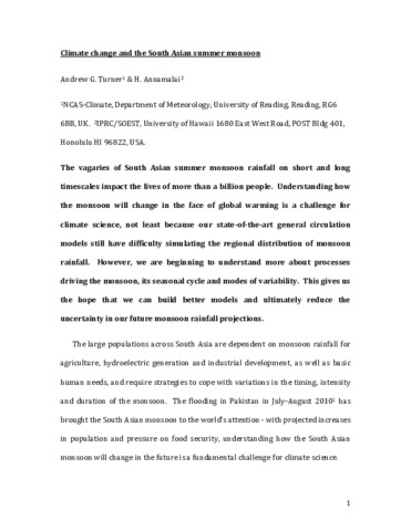 The vagaries of South Asian summer monsoon rainfall on short and long timescales impact the lives of more than one billion people. Understanding how the monsoon will change in the face of global warming is a challenge for climate science, not least because our state-of-the-art general circulation models still have difficulty simulating the regional distribution of monsoon rainfall. However, we are beginning to understand more about processes driving the monsoon, its seasonal cycle and modes of variability. This gives us the hope that we can build better models and ultimately reduce the uncertainty in our projections of future monsoon rainfall.