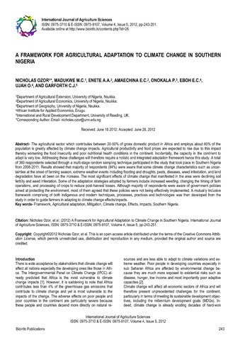 Uncontrolled Keywords Agricultural adaptation, Farmers, Mitigation, Climate change, Effects, Impacts, Southern Nigeria