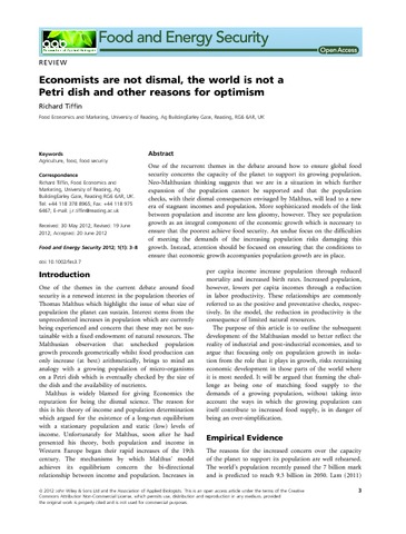 Tiffin, R. (2012) Economists are not dismal, the world is not a Petri dish and other reasons for optimism. Food and Energy Security, 1 (1). pp. 3-8. ISSN 2048-3694 doi: 10.1002/fes3.7