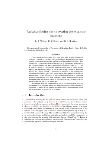 Wilcox, L.J. orcid id iconORCID: https://orcid.org/0000-0001-5691-1493, Shine, K.P. orcid id iconORCID: https://orcid.org/0000-0003-2672-9978 and Hoskins, B.J. (2012) Radiative forcing due to aviation water vapour emissions. Atmospheric Environment, 63. pp. 1-13. ISSN 1352-2310 doi: 10.1016/j.atmosenv.2012.08.072