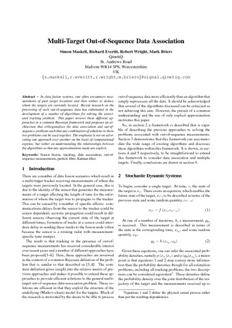 Maskell, S. R., Everitt, R. G., Wright, R. and Briers, M. (2004) Multi-target out-of-sequence data association. In: Proceedings of the Seventh International Conference on Information Fusion.