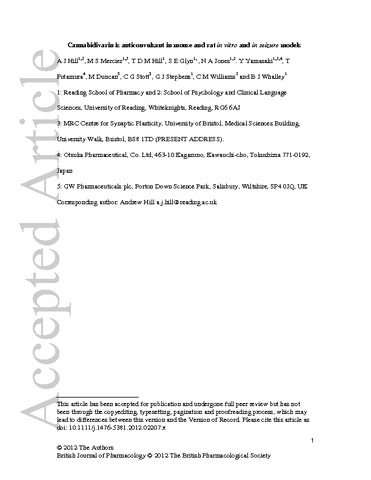 Cannabidivarin is anticonvulsant in mouse and rat in vitro and in seizure models.