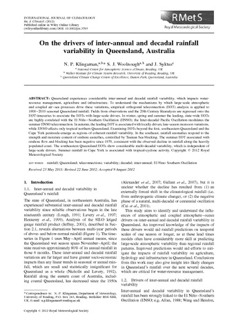 Uncontrolled Keywords rainfall;Queensland;teleconnections;variability;decadal;inter-annual;El Nino Southern Oscillation