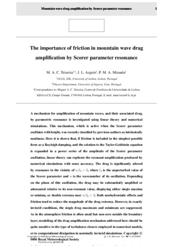 The importance of friction in mountain wave drag amplification by Scorer parameter resonance.