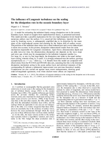 Teixeira, M. A. C. orcid id iconORCID: https://orcid.org/0000-0003-1205-3233 (2012) The influence of Langmuir turbulence on the scaling for the dissipation rate in the oceanic boundary layer. Journal of Geophysical Research - Oceans, 117 (C5). C05015. ISSN 0148-0227 doi: 10.1029/2011JC007235