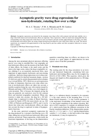 Asymptotic gravity wave drag expressions for non-hydrostatic rotating flow over a ridge.