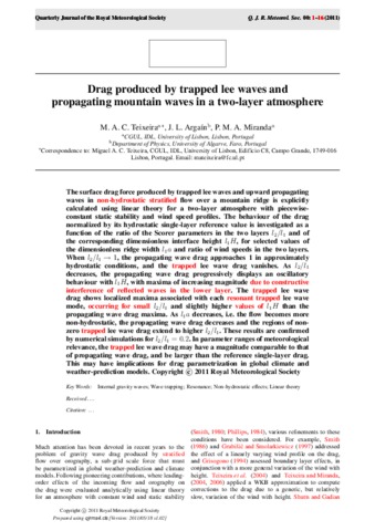 Drag produced by trapped lee waves and propagating mountain waves in a two-layer atmosphere.