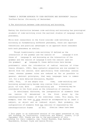 In: ESF Network on Codeswitching and language contact, g. (ed.)
