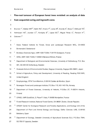 Fine-root turnover rates of European forests revisited: an analysis of data from sequential coring and ingrowth cores