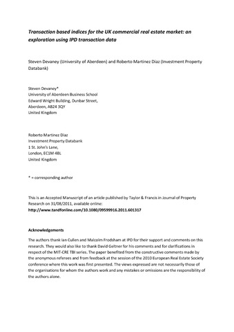 Transaction based indices for the UK commercial real estate market: an exploration using IPD transaction data.