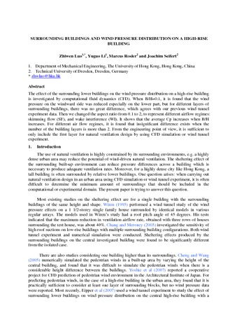 Luo, Z. orcid id iconORCID: https://orcid.org/0000-0002-2082-3958 (2008) Surrounding buildings and wind pressure distribution on a high-rise building. In: 9th International Symposium on Building and Urban Environmental Engineering, 7-10 July, Hong Kong.