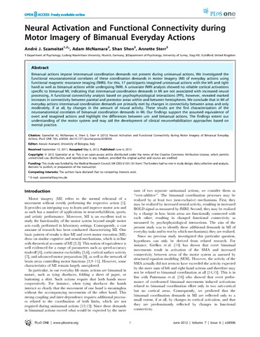 Szameitat, A. J., McNamara, A., Shen, S. and Sterr, A. (2012) Neural activation and functional connectivity during motor imagery of bimanual everyday actions. PLoS ONE, 7 (6). e38506. ISSN 1932-6203 doi: 10.1371/journal.pone.0038506
