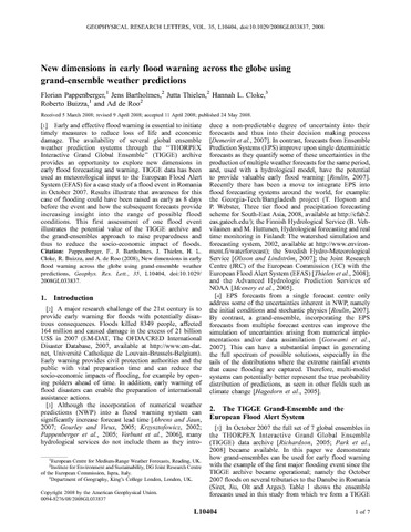 Pappenberger, F., Bartholmes, J., Thielen, J., Cloke, H. L. ORCID: https://orcid.org/0000-0002-1472-868X, Buizza, R. and de Roo, A.